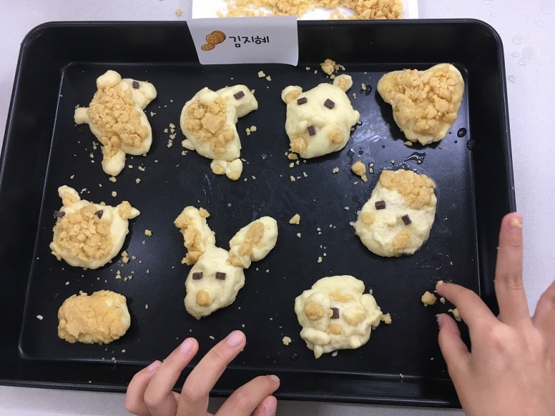 같은 재료지만 아이들의 개성만큼 다양한 빵이 만들어졌답니다.